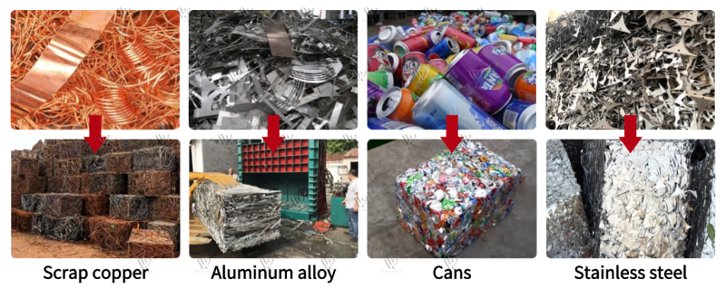 This series of balers is mainly used in steel mills, recycling and processing industries, and non-ferrous and ferrous metal smelting industries. Applications: Waste recycling stations, recycling centers, corporate customers, steel mills, etc. Materials: Iron/Steel: Scrap Iron, Light and Thin Materials, Scrap Steel, Scrapped Automobile Shells, Scraps, Waste Oil Drums, Bicycle Racks, Lathe Scraps, Shavings, Iron Filings, Steel Filings, Color Steel Tile, Stainless Steel; Aluminum scrap: aluminum chips, aluminum shavings, aluminum profiles, doors and windows, cans, aluminum foil, aluminum alloy; Copper scrap: copper wire, copper plate, copper filings, copper shavings, copper wire.