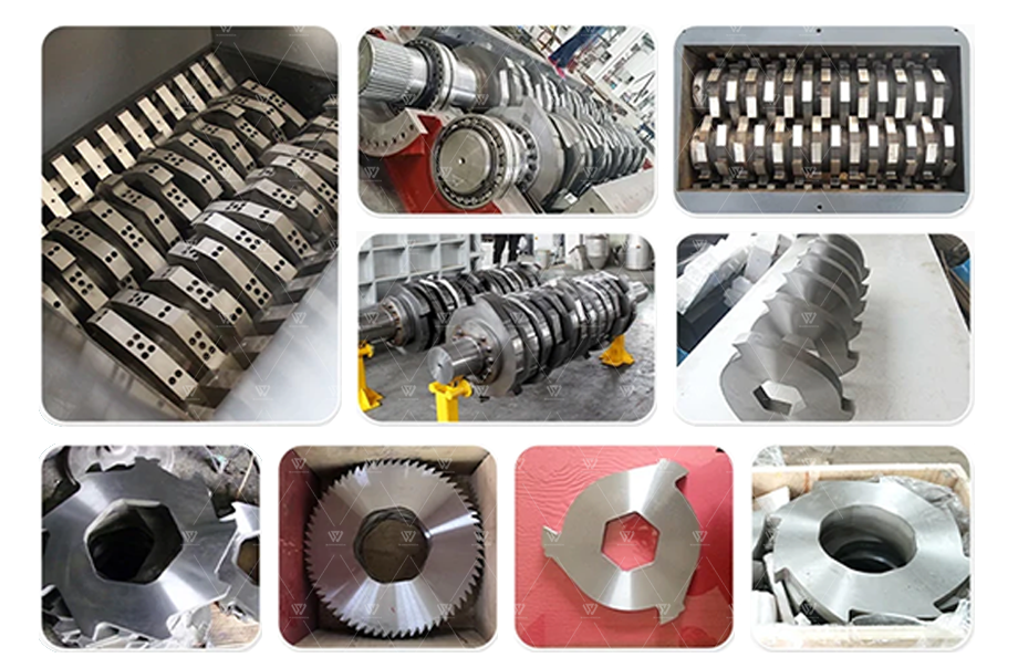 The knives of the waste paper shredder are made of special alloy steel by special processing, with better wear resistance, higher strength, repairable and other characteristics. The housing is flattened and disassembled, can quickly remove the movable knife, fixed knife, bearing, and other components, easy to maintain and replace tools.