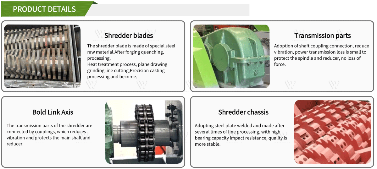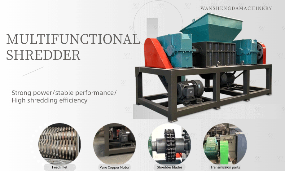 The multifunctional shredder adopts a microcomputer (PC) automatic control system, with start, stop, reverse and overload automatic reverse control functions, and has the characteristics of low speed, high torque, low noise, etc. The bearing seat adopts a split type, which is easy to disassemble and replace the blade, suitable for shredding extra large, extra thick and difficult to shred materials.