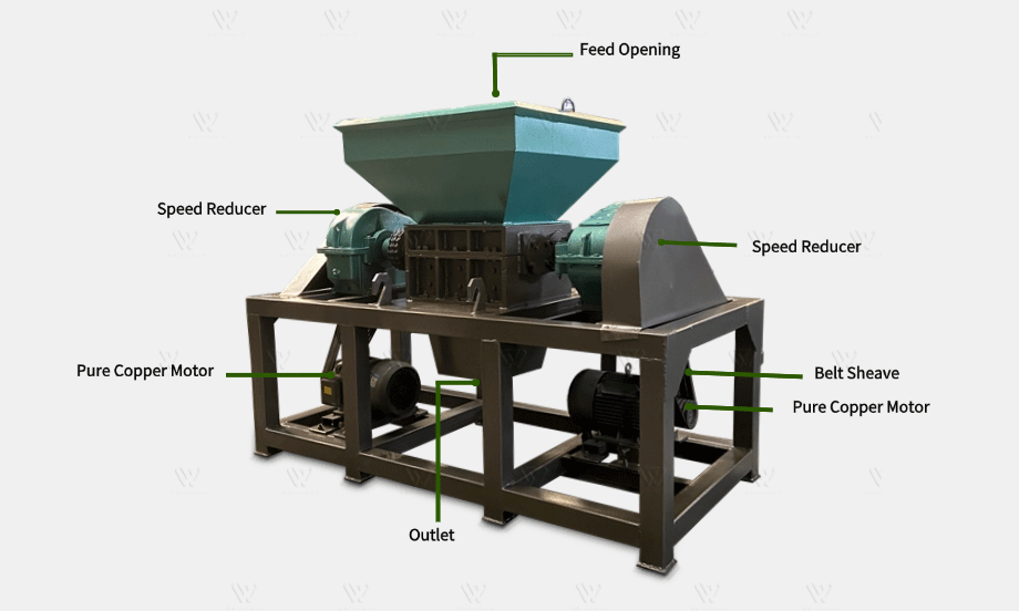When Wanshengda metal shredder equipment is working, the material can be fully coarsely crushed in the crushing chamber. High output, low energy consumption, high efficiency, and uniform discharging are the highlights of the equipment. When using this equipment, low noise, low pollution, simple operation and convenient maintenance are the characteristics of the metal shredder.