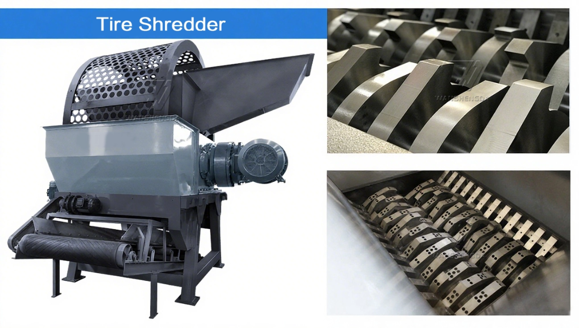 3. Tire shredder: Shred tires into sheets (50mm-150mm).