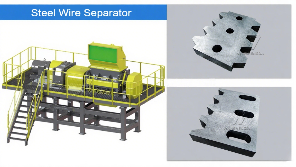 5. Magnetic separator: Separates steel wires from the mixture of rubber and steel wires.