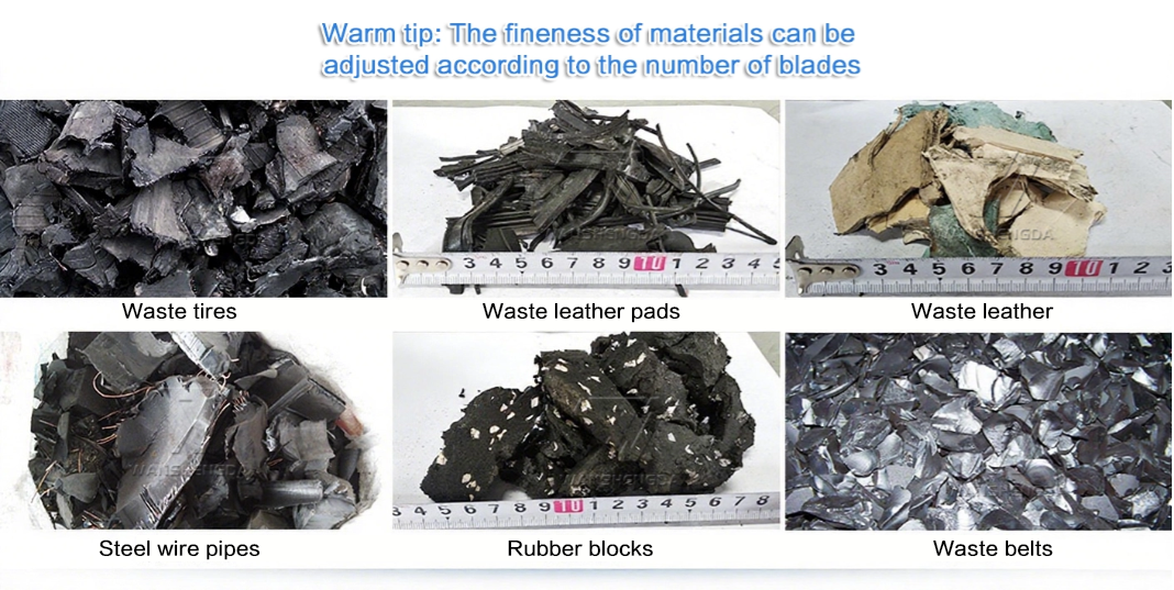 Body design: The blades are sturdy and wear-resistant. The blade arrangement and meshing method are specially designed for waste tires.